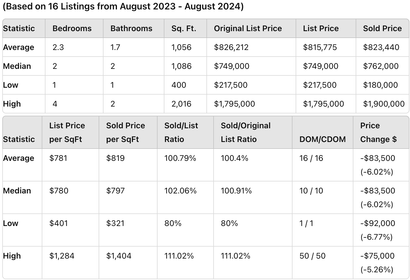 (Data based on 16 listings from August 2023 - August 2024)
