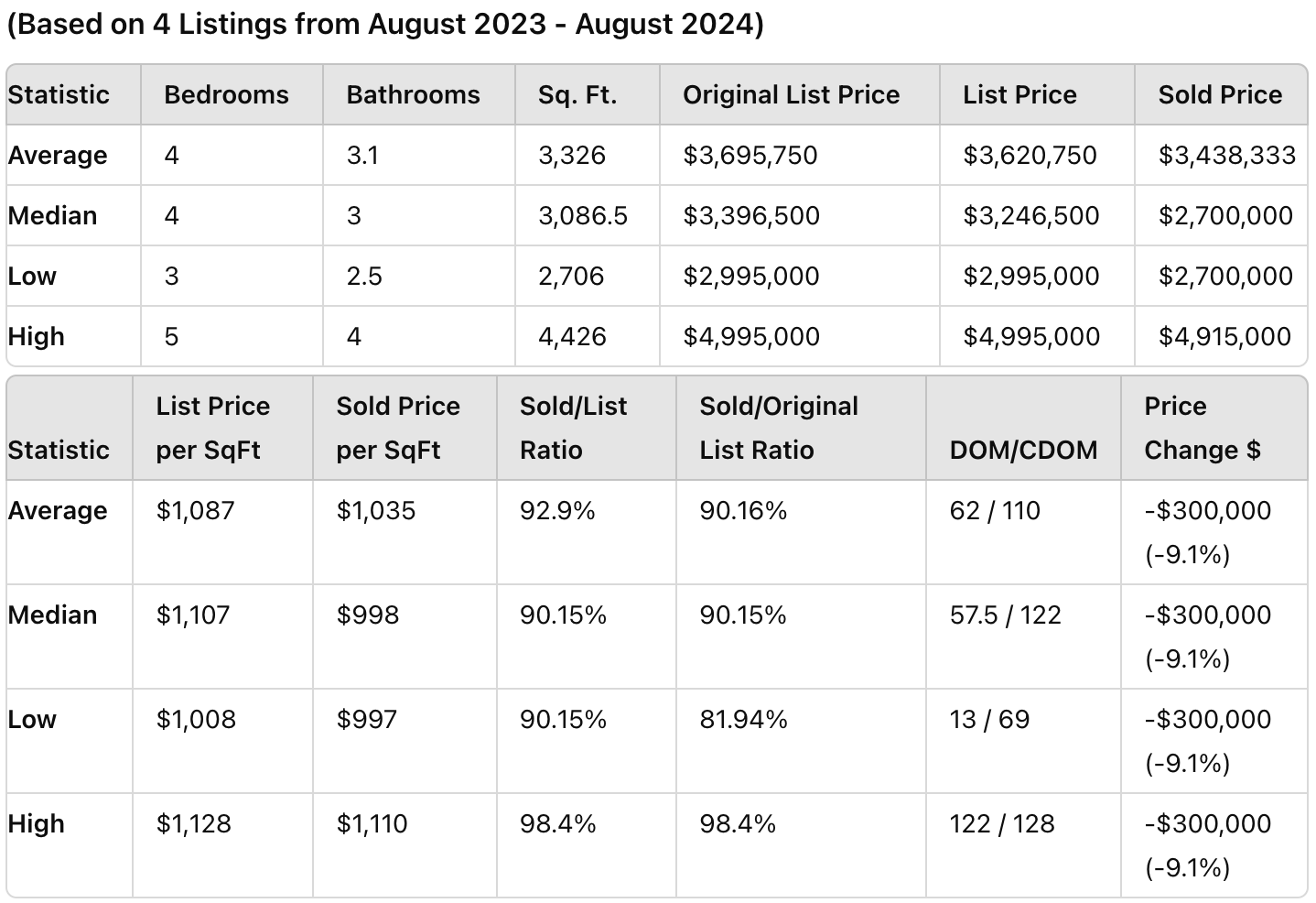 (Data based on 4 listings from August 2023 - August 2024)
