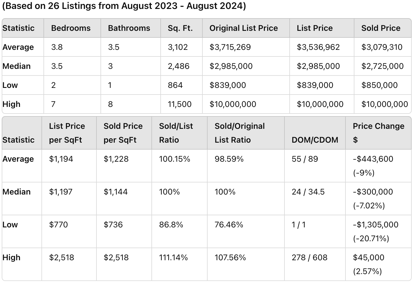 (Data based on 26 listings from August 2023 - August 2024)